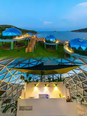 Shengsi Fisherman's Little Fish·Star and Sea Camping Site is located at No. 88 Chaoyang North Road, Wulong Township, Shengsi, situated within the Liuhe Chaoyang Scenic Area, with a superior geographical location. Adjacent to a private beach that is not open to the public, it offers guests a unique experience. The twelve zodiac-themed bubble houses stand facing the sea, scattered in an orderly fashion, with the boundless seascape in full view, escaping the city lights to feel the romance of the stars and the sea.