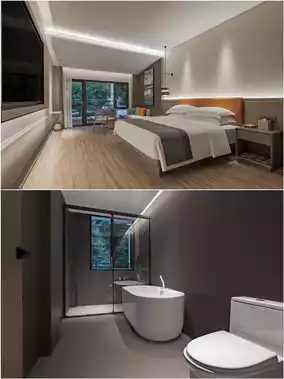 Step into the guest rooms of the homestay, where the understated luxury design showcases taste, and the mattresses, linens, and toiletries of star hotel standard create a comfortable and pleasant living environment. The treasure box and welcome tea snacks thoughtfully prepared in the lobby make every guest feel the meticulous care and service.