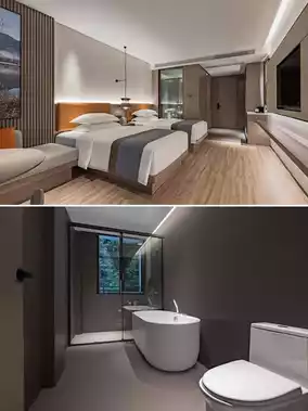 As soon as you step into the room, you will see a green forest outside the window, and the air is filled with a faint fragrance of trees, as if the whole world has quieted down. The mattress is soft and comfortable, allowing you to relax completely; the toiletries are also equipped according to the standards of a star hotel, so you can use them with peace of mind. Here, you can enjoy the feeling of being surrounded by nature, and every breath is so fresh and pleasant.
