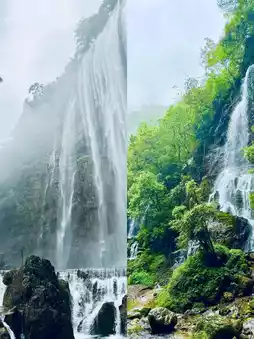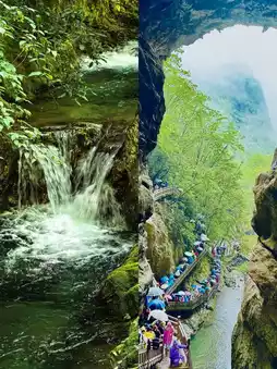5. Tiansheng Bridge: A landscape painting of waterfalls and stone bridges! Wear Hanfu for stunning traditional-style photos. The cool riverside plank path is perfect for hiking - don't forget to try mountain spring-chilled watermelon!