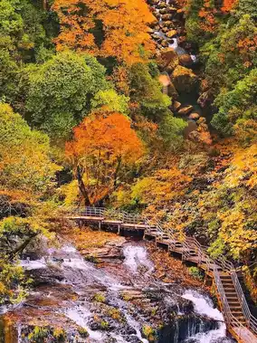 The whole route follows streams and waterfalls, with flat and easy paths. Beginners, lazy travelers, and even those with kids can easily handle it. In autumn, the whole forest looks like a spilled palette, with gold and orange-red intertwined. Walk and shoot while listening to the flowing water and enjoying the autumn scenery, you won’t feel tired at all.