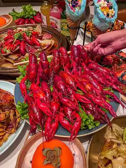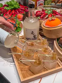 Dinner at Xita Korean Style Street. Go to Xita for delicious food. There is a main street and several small streets. One street specializes in selling Korean ingredients, with a wide variety of spicy cabbage, platycodon, rice cakes, and rice wine.