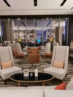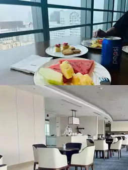 The executive lounge occupies almost an entire floor, with a large space and relatively simple decor, offering a great view. Cakes, fruits, and snacks are provided even outside of afternoon tea and happy hour. The terracotta warrior statue at the lounge entrance fully reflects the artistic decor style of Le Méridien.