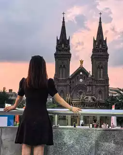 The time to go to Xiaonan Church is around 5pm. The normal opening hours are: 9:00--16:00, and it is open to the public free of charge. There will be more angles to take pictures from inside, so if you want to go in, you must go early. Even though it is closed, I still want to try my best to take pictures! I happened to meet Cheng Cheng and Ma Li filming a movie in the square, and there was a pink sky, which was very romantic! There is really a kind of beauty found abroad, which makes up for the regret of being closed!