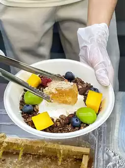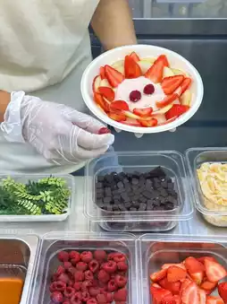Their Greek yogurt bowl is very delicious. It costs CNY 20 per serving on group buying. There are a lot of fruits inside and it tastes quite solid. It's a chain store, so you can buy it nearby.