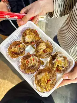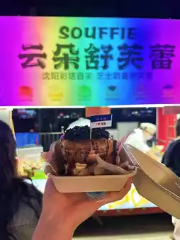 The following pictures are all snacks from the Color TV Tower Night Market. Grilled gluten costs CNY 10 for 3 skewers, garlic scallops cost CNY 15 for 6, and souffle costs CNY 18. The prices are all acceptable. It's a night market where locals in Shenyang will go to eat. I recommend you to go and play!