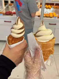 Their signature fish ice cream is a must-try. I ordered a double scoop for CNY 18. The croissant and egg tart are also CNY 18 each. The egg tart is CNY 30 for 3, which is a bit expensive and tastes average.