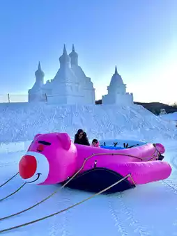 🔵Then go ride a big camel, play snowmobiles, and the big children's castle snow ring where many people can slide together. It's about to take off when you slide down. The slope is steep and the speed is fast. It's exciting❗️⚠️Children under 6 years old are not allowed to play, ha~. It is time to take your children under 6 years old to play in snow rings.