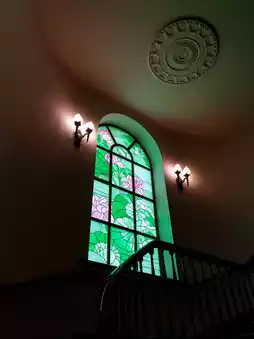 Amazing spiral staircase, with different stained glass patterns on each floor, very vintage, worthy of being the oldest hotel in Liaoning.