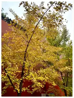 Here we can see the yellow leaves contrasting with the red walls, beautifully impressive.