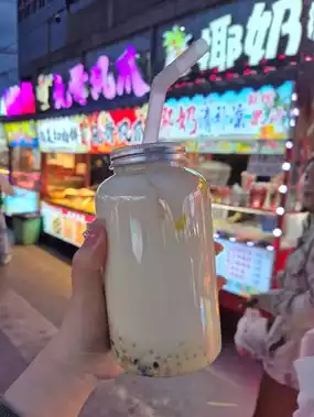 Next, I went to Chaejeonta Night Market. It is at the end of the long night market where you can see the TV tower. I bought fried squid and blueberry yogurt here. They cost 20 yuan and 13 yuan respectively.