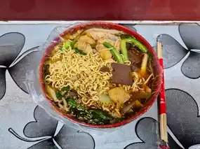 First, I went to Zhongjie, the bustling area of Shenyang. Zhongjie is a great place to eat and shop. There are also alleys with a strong Chinese feel, so it's nice to look around. I went around to get some street food and entered a store with a lot of locals. It turned out to be a spicy soup restaurant. The ingredients were set, and I could only choose the size and additional toppings. I added ramen to the small size, so it was 16 yuan in total.