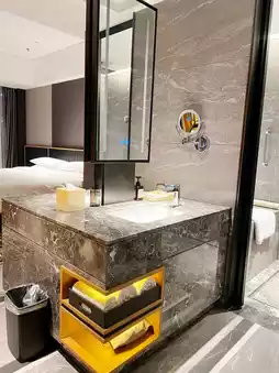 🏨 Hotel Ambiance: The lobby exudes artistic and modern vibes—perfect for photos. Rooms feature a minimalist wooden design, cozy and comfortable, with spacious beds, plush mattresses, and down-filled pillows for top-notch sleep. Blackout electric curtains ensure a restful night, and the bathtub comes with disposable liners for a hygienic soak.
