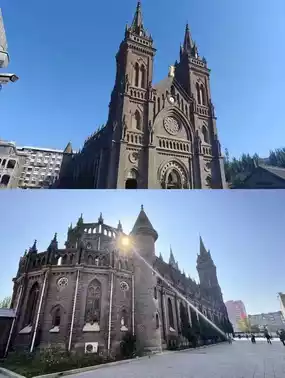 | A Cross-Shaped Love Letter in the Light and Shadow. When the Gothic spires pierce Shenyang's clear sky, and the rose window filters sunlight into colorful poetry—every brick of Xiaonan Church waits for the camera to decipher its romantic code.