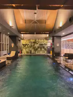 Then I tried out the hotel's swimming pool. I wonder if this pool echoes its small lobby; I estimate its length to be only about fifteen or sixteen meters. You reach the end after just a couple of kicks. However, the changing rooms also have massage hot tubs and a steam room, which makes up for some of the drawbacks.