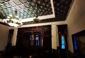 East Courtyard: The Large Qing Building and Small Qing Building; the Large Qing Building (built in 1922) is Romanesque in style, with blue brick walls, grand and solemn, and was once Zhang Xueliang’s office and reception area for important guests. The Large Qing Building has a building area of about 2,460 square meters, with three floors and a height of 37 meters, making it one of the highest points in Shenyang at the time. The entire building is magnificent, with vivid and exquisite three-dimensional exterior relief sculptures, and the murals decorating the main rooms inside are uniquely crafted with high artistic value. The Small Qing Building, located in the East Courtyard of the Zhang Mansion (built in 1918), is situated at the center of the Zhang Mansion garden and is also known as the "Garden Flower Hall." It is a two-story brick-wood structure blending Chinese and Western styles, commonly called the Small Qing Building due to its blue brick and tile construction. Covering 450 square meters, the entire building is shaped like a concave character. The decorative lines of the Small Qing Building’s eaves, window adornments with stone guards, and the circular parapet wall at the top of the rear of the building are typical Western architectural features.