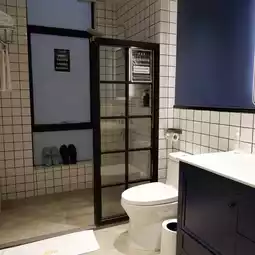 🏠Environment: There is a small garden at the door🪴. The building is four stories high. The ground floor is the reception, restaurant, terrace and large living room. The decoration in each corner is American style with dark blue as the theme. The owner took in a stray dog. There is a stained glass window of Gong Qijun animated film on each staircase🪟, and photo frames are hung on the wall. You can stay in this B&B for half a day to check in😂.