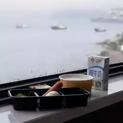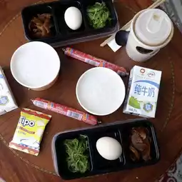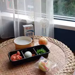 🍽️Breakfast: Breakfast on both days was almost the same, both were white porridge with Chinese salad, preserved radish, eggs, instant sausage and milk🥛. On the second day, there were steamed buns and sweet oranges.😝Maybe we asked where to buy fruit the night before, so we had fruit to eat the next day.
