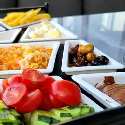 The menu offered a variety of authentic Turkish dishes, including kebabs, mezze, and traditional desserts. The brunch platter was a particular highlight, with succulent a variety of fruit and cheese. Vegetarians also have plenty of options to choose from, such as the stuffed grape leaves and the hummus.