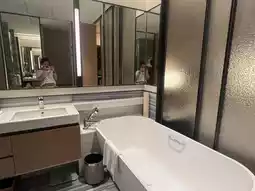 The hotel is located next to the Science and Technology Park in Nanshan District, Shenzhen, with convenient transportation. The hotel lobby is on the 46th floor, the 🏋️ gym and 🏊♀️ swimming pool are on the 48th floor, the high-altitude infinity heated swimming pool is decorated with panoramic floor-to-ceiling glass, you can enjoy the panoramic view of Shenzhen South, overlooking Futian District, and you can also enjoy the brightly lit night city view in the room. The scenery is first-class👍Highly recommended⭐️⭐️⭐️⭐️⭐️