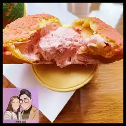 The filling is strawberry + fresh cream! Not too sweet!