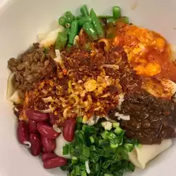 I have eaten biang biang noodles in Hong Kong, which are mainly noodles wrapped in spicy oil, without any ingredients. This authentic Shaanxi version gives me a different feeling. It is not so oily, the spiciness is very low, and the ingredients are rich, such as red kidney beans, beans, green onions, mushrooms, etc. It has a good taste and texture. The flat noodles are not super chewy, but the floury aroma of handmade noodles is still there. I noticed that the presentation of the food in other branches is a little different, but this one is quite refined.