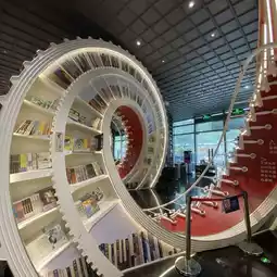 The architectural design of Zhongshuge is unique, with the wall-shaped bookshelves twisted into a spiral shape filled with different books. Large It is a spacious and bright building with lots of natural light and open spaces. As soon as you enter Zhongshuge, you will be surrounded by a sea of countless books. The bookshelves are filled with books on various topics, ranging from literary classics to contemporary works.