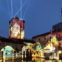 The building itself is not equipped with lights, but with 3D laser projection.