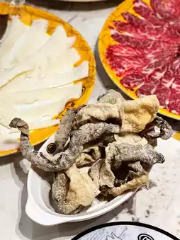 Breast lard is a layer of fat film with rich milk flavor, not greasy at all, and has a very crisp feeling; ox tongue is chewy and elastic, and has a good texture.