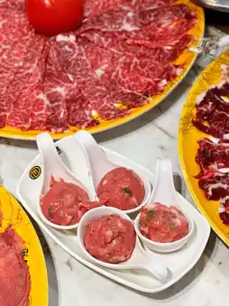 All the beef in the store comes from China🇨🇳the top yellow cattle-Shaanxi Qinchuan native yellow cattle, which is freshly delivered to the store three times a day🚛Beef is cut on demand🔪, and beef balls are hand-made on demand👊🏻. The open kitchen allows you to watch the process, and what you eat is definitely fresh beef slaughtered within three hours😋