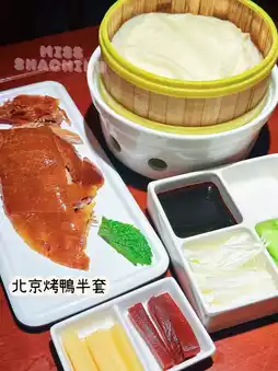 โฅ This Peking Roast Duck is very different from Hong Kong, Hong Kong's sliced โโduck like the skin of roast duck, but this one is 0.5cm thick, each piece is also very crispy, very crispy ๐ I personally like to eat, but my two friends like to eat Hong Kong more, you might as well try to see which one likes more ๐