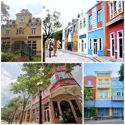 💁Wenggu Manor is located in Yinhu Country Park, Longgang District, Shenzhen, behind Wenbo Palace. It covers an area of 70,000 square meters and is a colorful town hidden in a corner of Shenzhen. After passing through the gate of Wengu Manor and walking a short distance, you can see an exotic street. This street is about 500 meters long, with colorful houses, European-style attic buildings, various Western ancient Roman sculptures, Dutch windmills by the lake, etc.