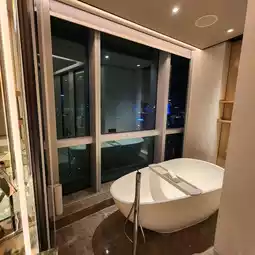 The Nanshan District's Nanshan Marriott Hotel is located on the 43rd floor and above, with unparalleled views of Shenzhen Bay and Qianhai. The lobby, restaurant, pool, gym and rooms all offer a wide view. The open-plan room we stayed in this time offers a 270-degree view. The room is spacious and comfortable, except that the TV is a little small. The hotel has an indoor swimming pool that is not affected by the weather. The restaurant also offers a wide range of buffet breakfast options with good quality. The hotel is adjacent to the Coast City Shopping Center and the food street, making it very convenient for shopping and dining. In terms of transportation, it is about a 10-15 minute walk from Shenzhen Metro Line 8's Houhai Station or Line 9's Nanshan Book City Station.