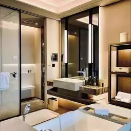 The open-plan bathroom has a strong sense of design. If you come, you can prepare disposable bathtub bags and bath balls, or you can order a bath ball from the hotel for 68 yuan. Open a bottle of champagne, prepare some fruits, and have a fragrant bath ball to wash away the day's fatigue and relax your whole body and mind.