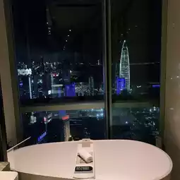 I hastily booked the Marriott Hotel in Mid-Continent. The hotel lobby is on the 43rd floor. The elevator has transparent windshields going up and down, and the view is pretty good, with three sides facing the sea.