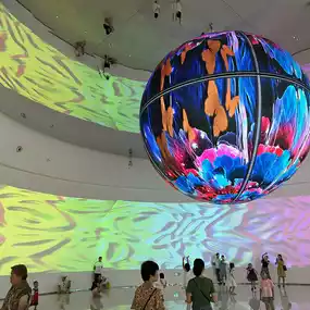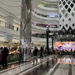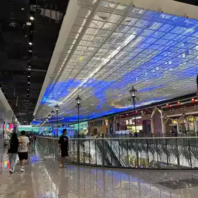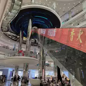 The mall boasts many popular attractions, with an escalator in the atrium that plays space-themed LED animations above, creating a sci-fi scene flying through space that’s very shocking. When you reach the top floor by elevator, you will see the technologically charged planet furnishings and large wall projections.