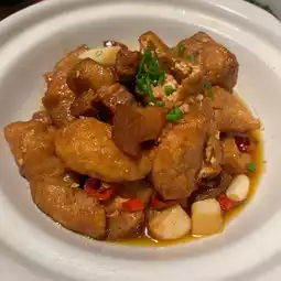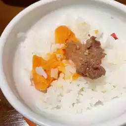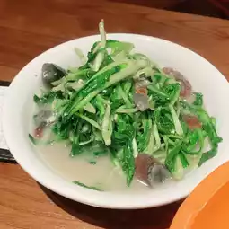 The stir-fried dragon slices are slightly spicy and appetizing, and the portion is quite large. The beef has a meaty flavor, but the meat is a little too finely chopped. The local pork and Hengyang fried tofu are quite a surprise. The local pork is cut into strips like Dongpo pork, soft and tasty, the pig skin is soft and glutinous, and the fat is very tempting😍This dish has a strong and sweet soy sauce flavor and is not spicy. The chicken greens in the soup are crispy and sweet, the Wuchang rice is steamed with orange sweet potatoes, the rice grains are distinct and fragrant, the sweet potatoes are very sweet, and the mashed sweet potatoes and rice are very delicious when eaten together, making you want to finish the whole pot of rice...