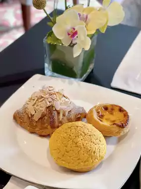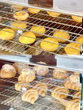 There are all my favorite buns, crispy and layered 🥐almond croissants, sweet and delicious Portuguese tarts, crispy crust and soft inside 🍍pineapple buns, and a bread oven is also provided for customers to reheat instantly.