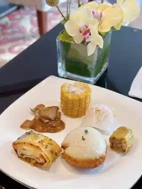 The self-service salad bar has a lot of choices, and the vegetables are very fresh, and there are also sushi rolls.