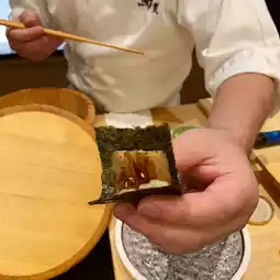 First of all, I have to praise the chef for his good gestures in making sushi, because we don’t have small plates, so we just pick up the sushi and put it in our mouths.