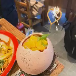 It is a strawberry ice cream 🍧 with a variety of fruit desserts. When it is served, candles are lit ⭐️ for a fireworks effect 🎆 so beautiful 🥹