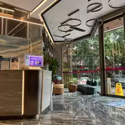 The hotel entrance is in line with the image of a four-star hotel. There are many different restaurants nearby. The hotel lobby is small but very clean and tidy, and exudes a faint fragrance.
