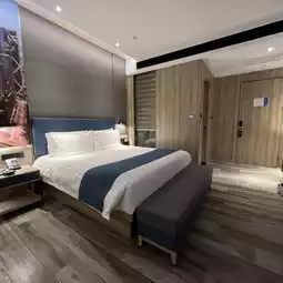 As soon as you enter the room, you can feel its spaciousness. There was plenty of space around the queen bed. The entire room is designed with wood, which makes people feel very comfortable and fresh.