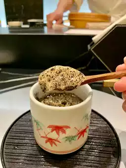The egg 🥚 is steamed very tender and has a rich black truffle flavor