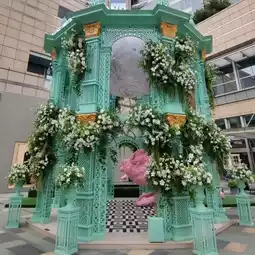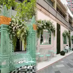 Fantastic imagination, the whole courtyard is decorated with a combination of Tiffany blue and pink