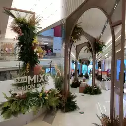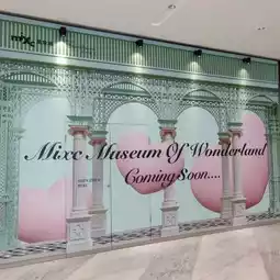 Create a shopping mall with a romantic atmosphere of luxury, fashion, art and romance