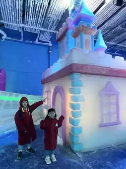 In addition to watching animals, there are also different paid projects, like the Ice and Snow World, where you can play with snow and slides in the ice and snow under a coat, and you can ride real horses.