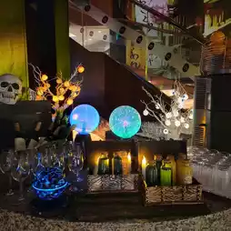 The whole restaurant is decorated with rich Halloween elements🎃 such as interactive light and shadow projection pumpkin heads, magic totems and phantom figures