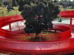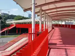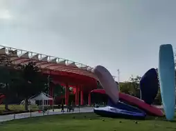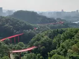 Hongqiao is 4 kilometers long. The entire Hongqiao is surrounded by white clouds and green mountains. From a distance, it looks like a flowing red ribbon 🎀 It is very spectacular and beautiful. There are many places to check in. The park is densely packed with trees. Walking in the natural ecological corridor is refreshing. Take a walk, run, picnic here🍱🥤🧃 It is really relaxing. The roof of the entrance is designed with large steps. You can sit and check in and take pictures to watch the sunset🌄 You can check in here all day. It is a good choice to get away from the city and breathe fresh air here