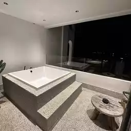 The large bathtub is on the private sea view terrace, you can look at the 270 degree scenery🤤 The bathtub Size is big enough for two people to line up evenly😈